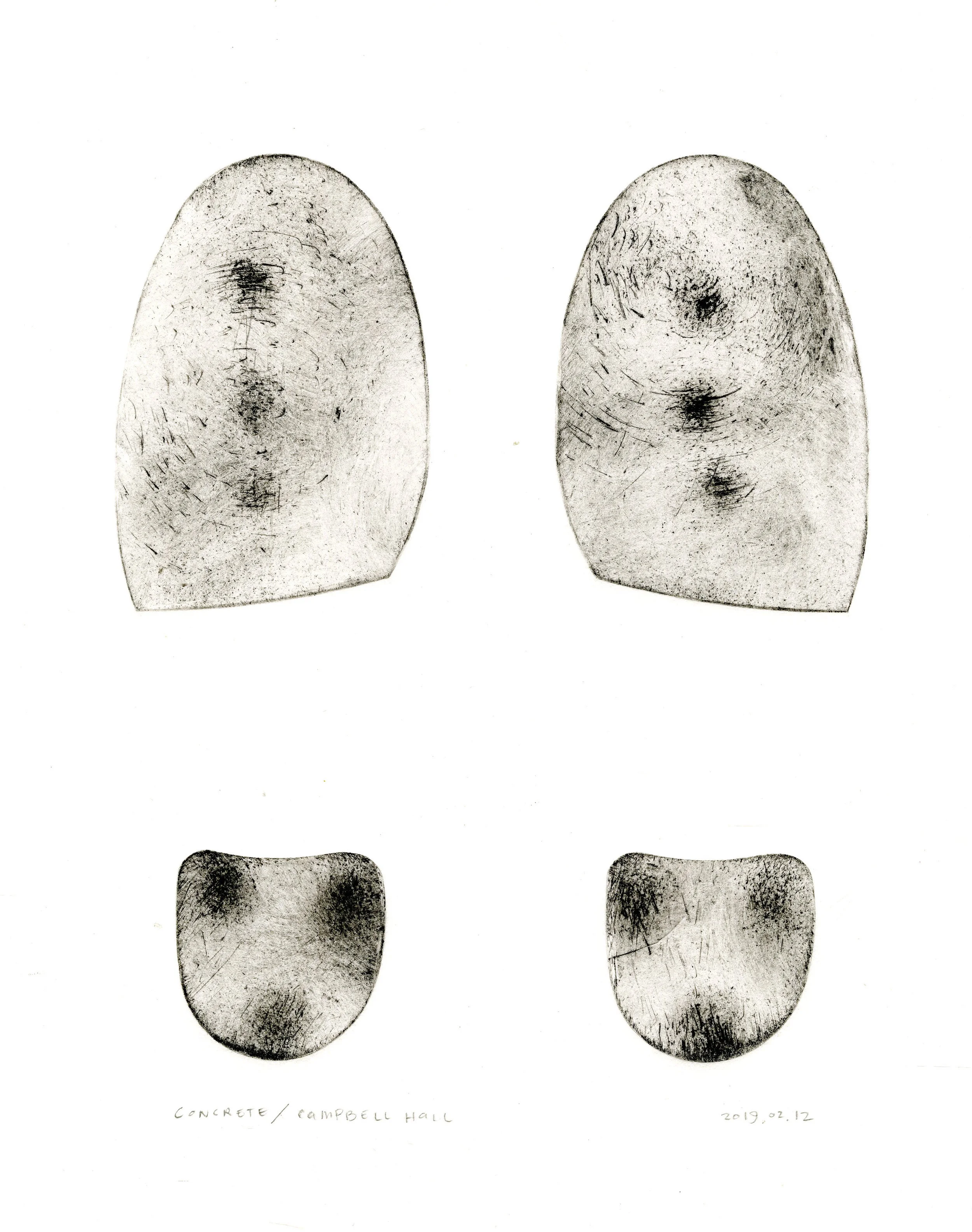 EXPERIMENT NO. 03 reveals the materiality of various surfaces using dry-point prints w/ plexi-glass “shoes”